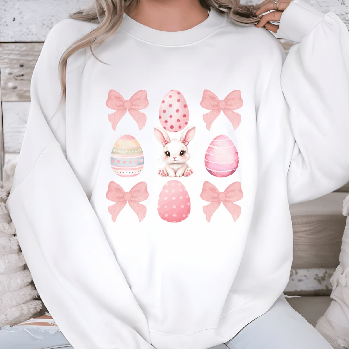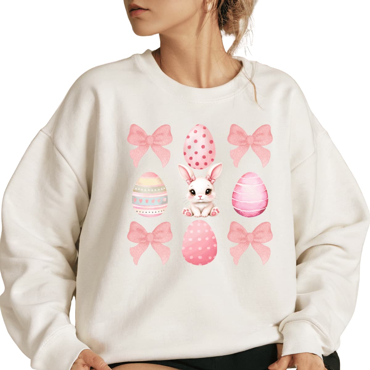 Add a touch of charm to your Easter wardrobe with this cute and cozy sweatshirt, perfect for fans of pastel aesthetics, coquette fashion, and springtime celebrations. Featuring an adorable Easter bunny surrounded by delicate pink bows and decorated eggs, this design brings together softness, femininity, and festive cheer in one must-have piece.