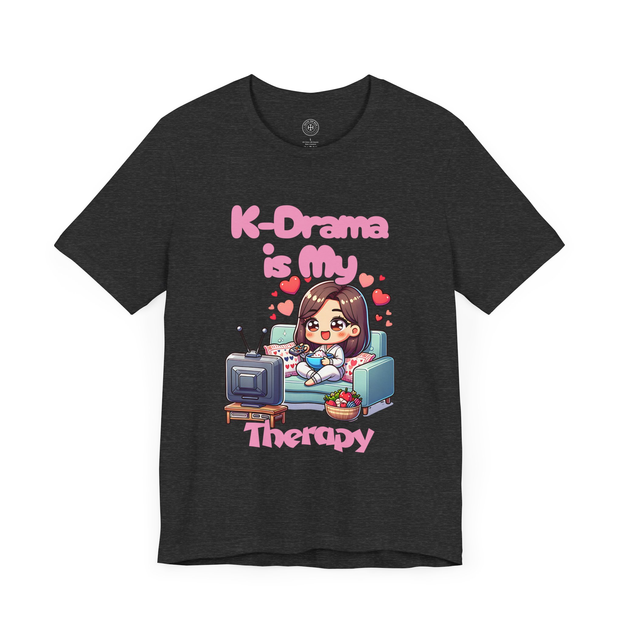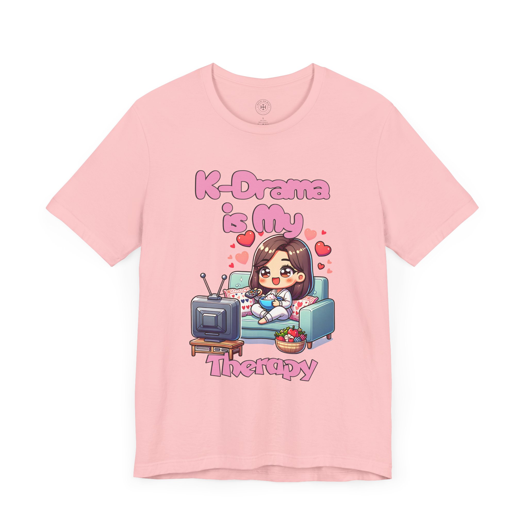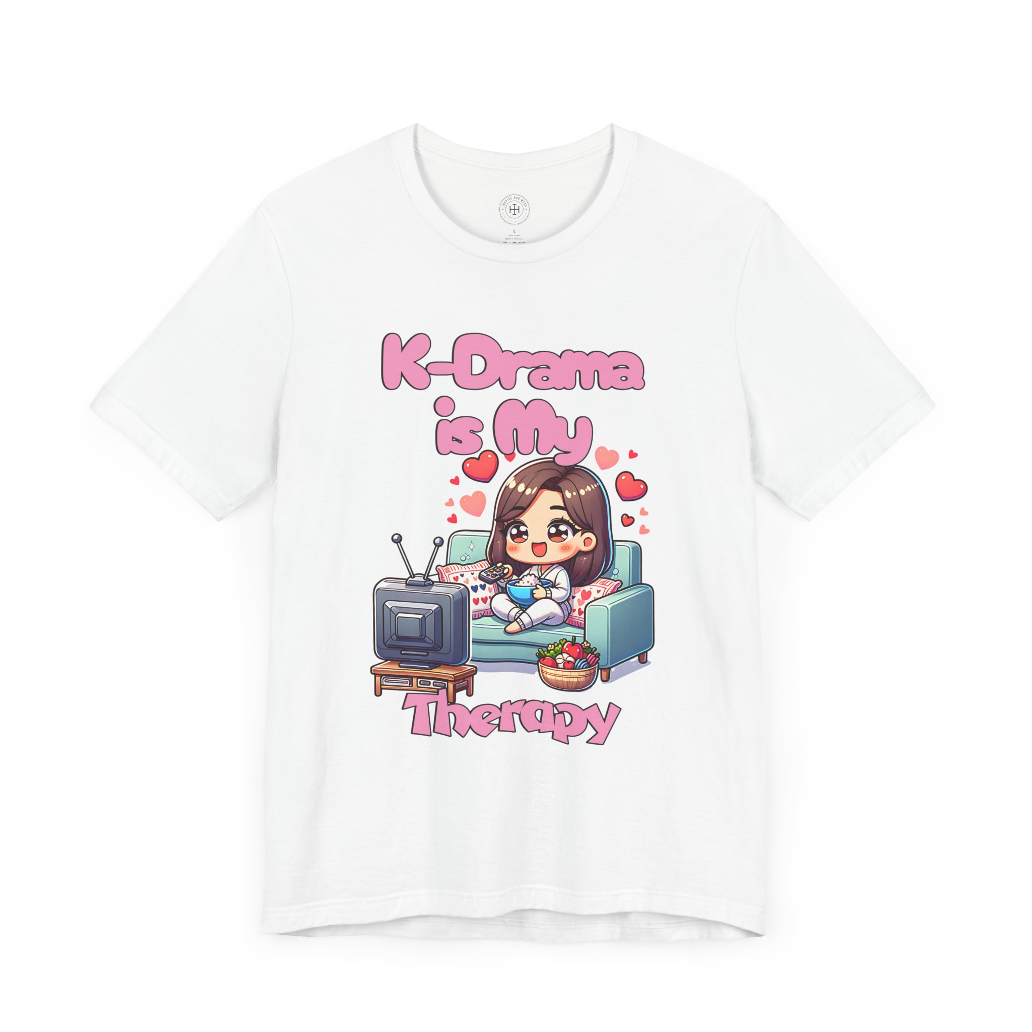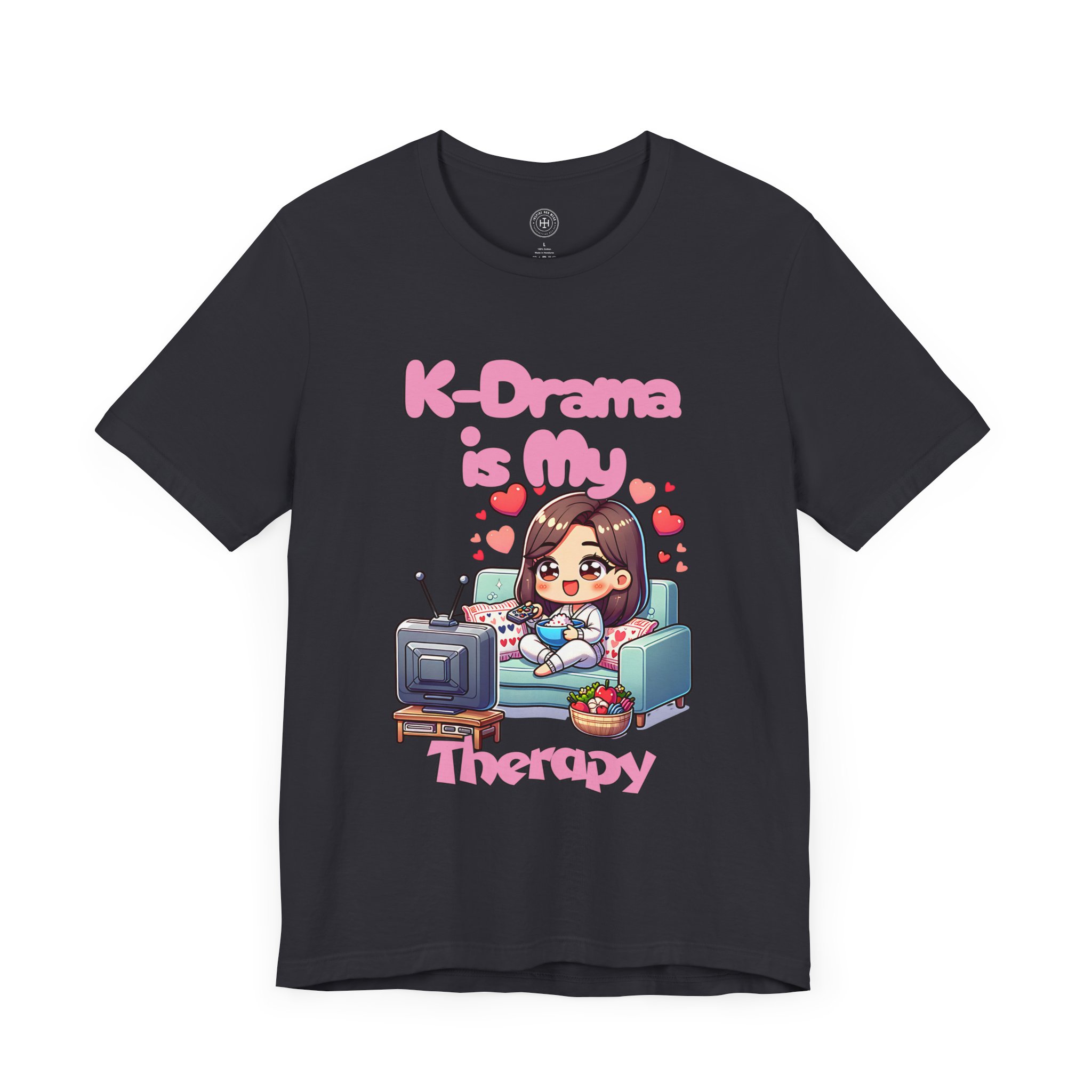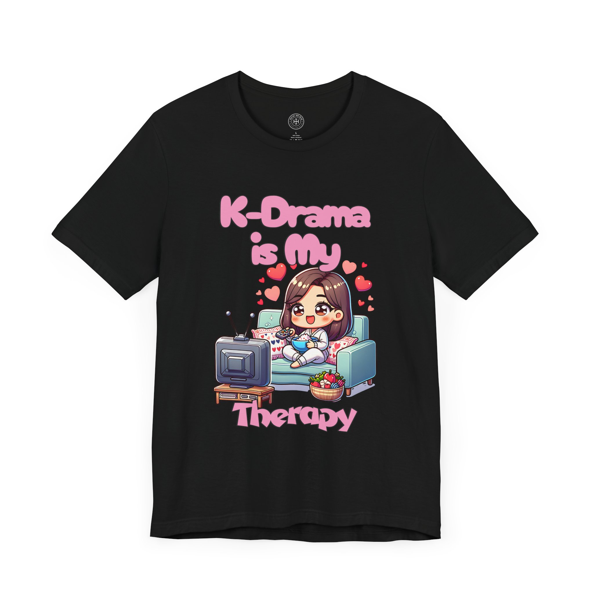 For all the K-drama fans out there, our “K-Drama is My Therapy” t-shirt is the perfect way to express your love for binge-watching your favorite Korean dramas. Whether you’re catching up on the latest romantic comedy or diving deep into a historical drama, this tee embodies the joy, relaxation, and comfort that comes from unwinding with your favorite shows. With its adorable and vibrant design featuring a cute anime-style character lounging on the couch, remote in hand, this t-shirt is an absolute must-have for K-drama enthusiasts.